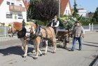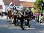 Als dann um 13.30 Uhr die ersten Klänge der Musikkapelle Röfingen zu hören waren ging´s los. Der Reit- und Fahrverein Jettingen führte den Zug an. In den Kutschen von Alban Wolf aus Bibertal Ettlishofen, Karl Aumann aus Zusamzell, Familie Rieß aus Unterknöringen und Matheus Grüner haben die angereisten Ehrengäste ihre Plätze gefunden.
