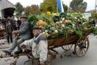 Die weiteste Anreise hatte Alfons Mesner aus Wildbadkreut (177 km). Er zog den Wagen mit der Erntekrone. Die Göggelmann Mädla aus Eggenhofen schlossen in ihren prächtigen Kleidern den Zug ab.